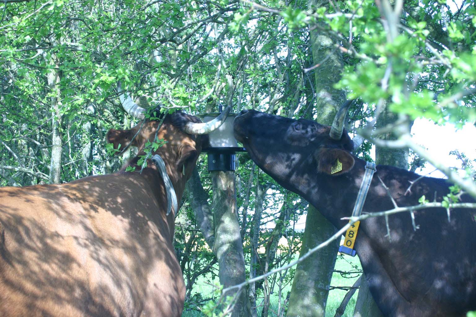 • Grazing animals: Place on back height. The salt goes down from the block along the pole.
