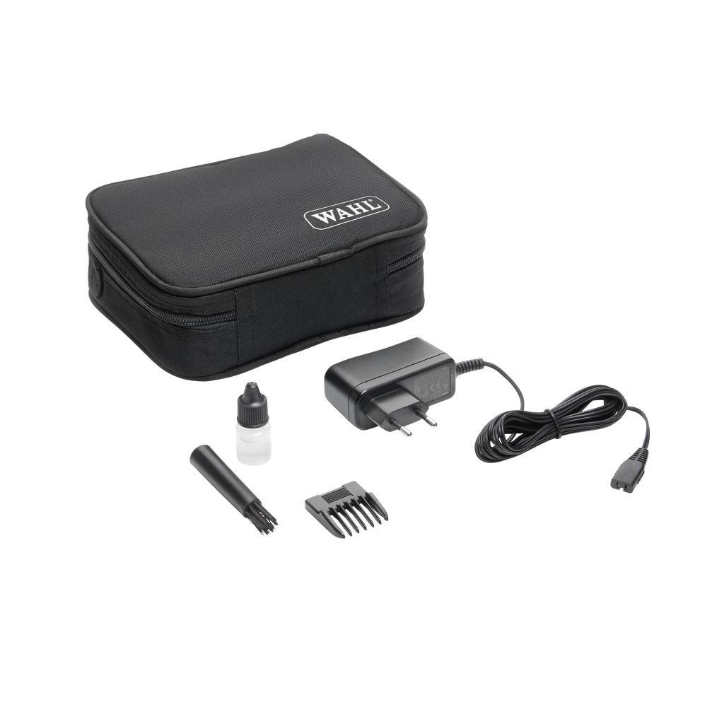 The trimmer comes in a handy case with charging cord, brush, extra blade and maintenance oil.