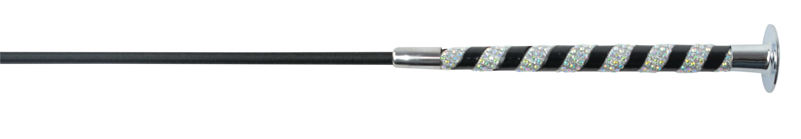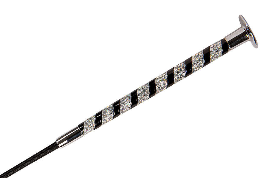 – Handle: Fine, alternating rhinestone spiral and PVC.