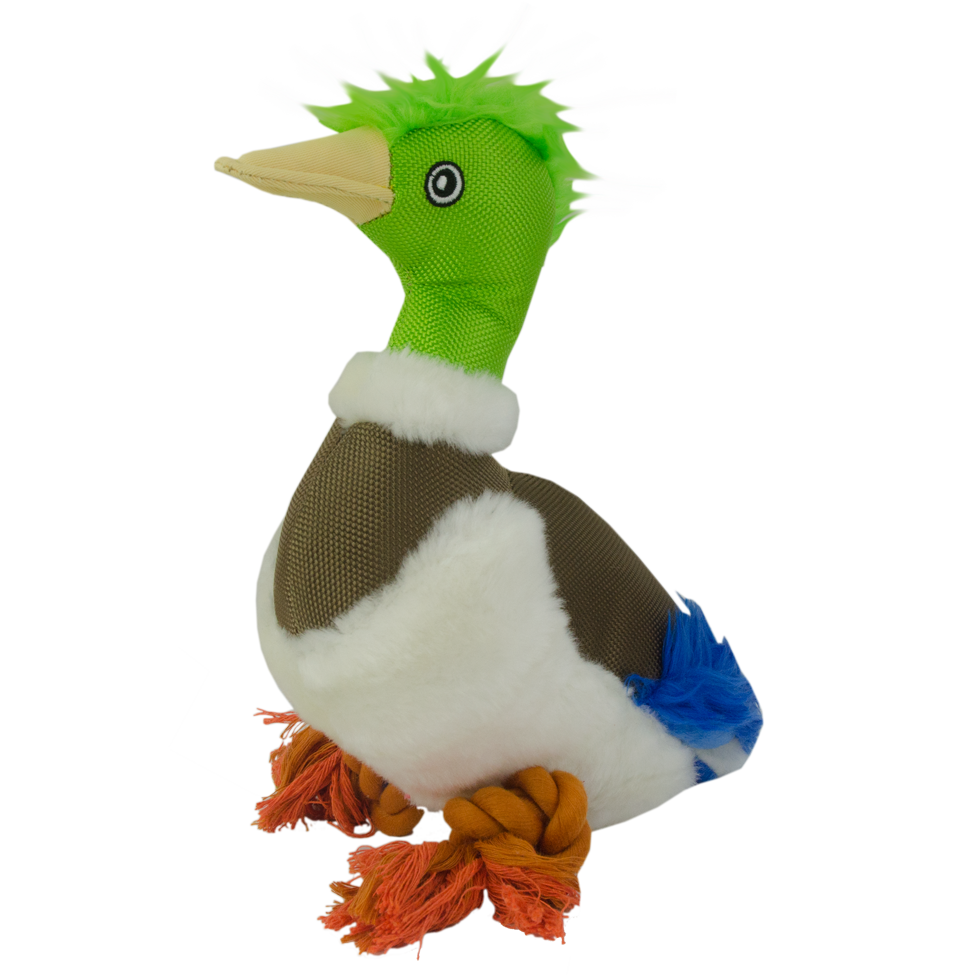 The Wild Life Collection is made up of natural and realistic looking furry toys. The fur is created using very soft fur and this duck also contains a dental rope and squeaker.
