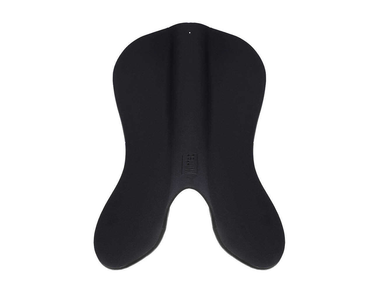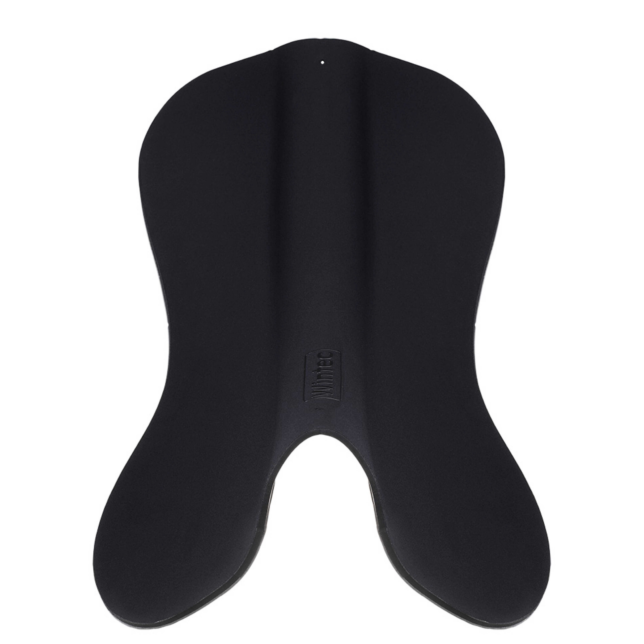 This anatomically shaped saddle pad, reminiscent of dressage saddles, provides optimal clearance for the horse’s spine.