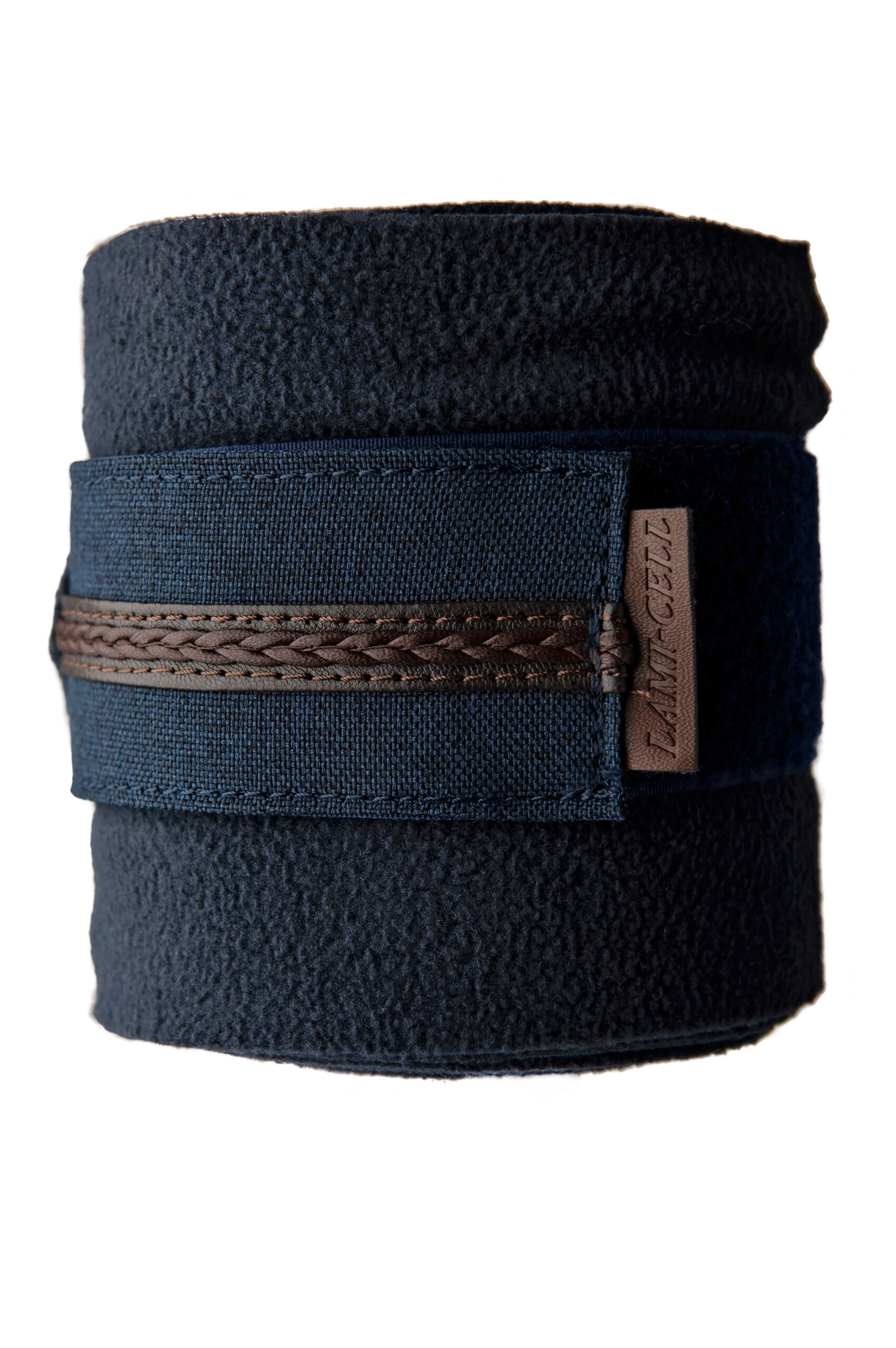 Fleece and stretch wool fabric. Machine washable, do not tumble dry.