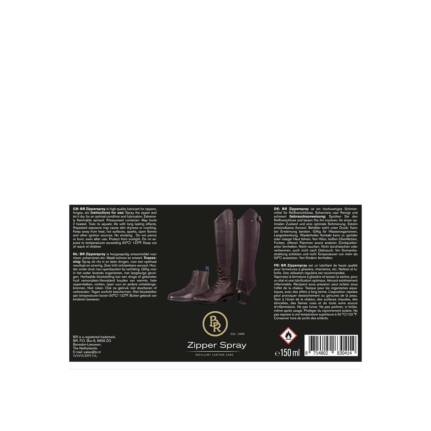 BR Zipper Spray cleans and lubricates zippers, hinges, etc. We recommend regular use of this high quality lubricant.